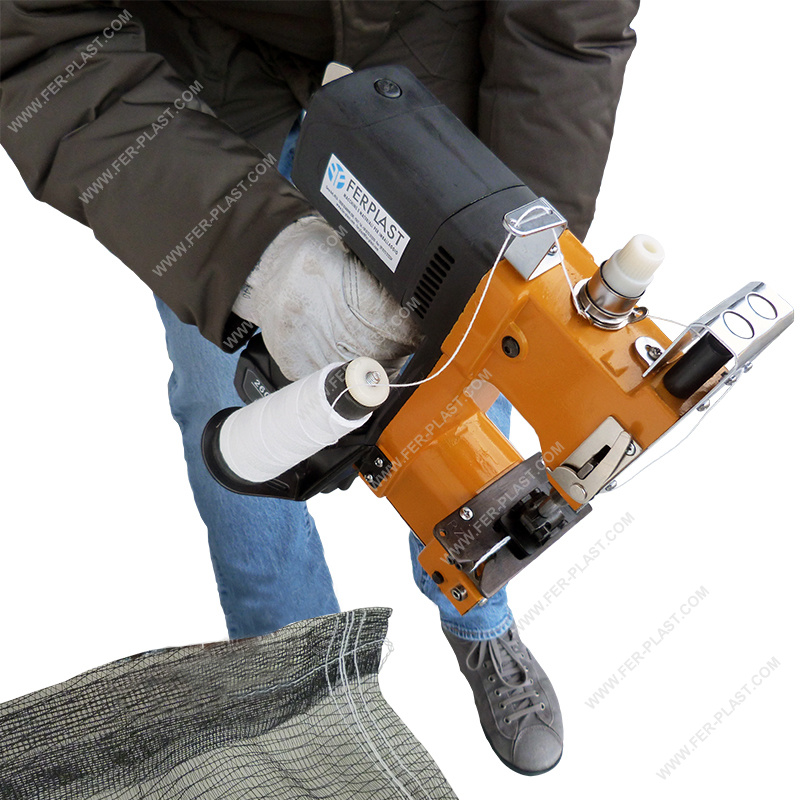 Ο στιβαρός μηχανισμός σύρσης σας επιτρέπει να ράβετε εύκολα γιούτα, χαρτί, ύφασμα, πλαστικές σακούλες, σακούλες με δίχτυ και δίχτυα κατά του χαλάζι και της ελαιοσυλλογής.