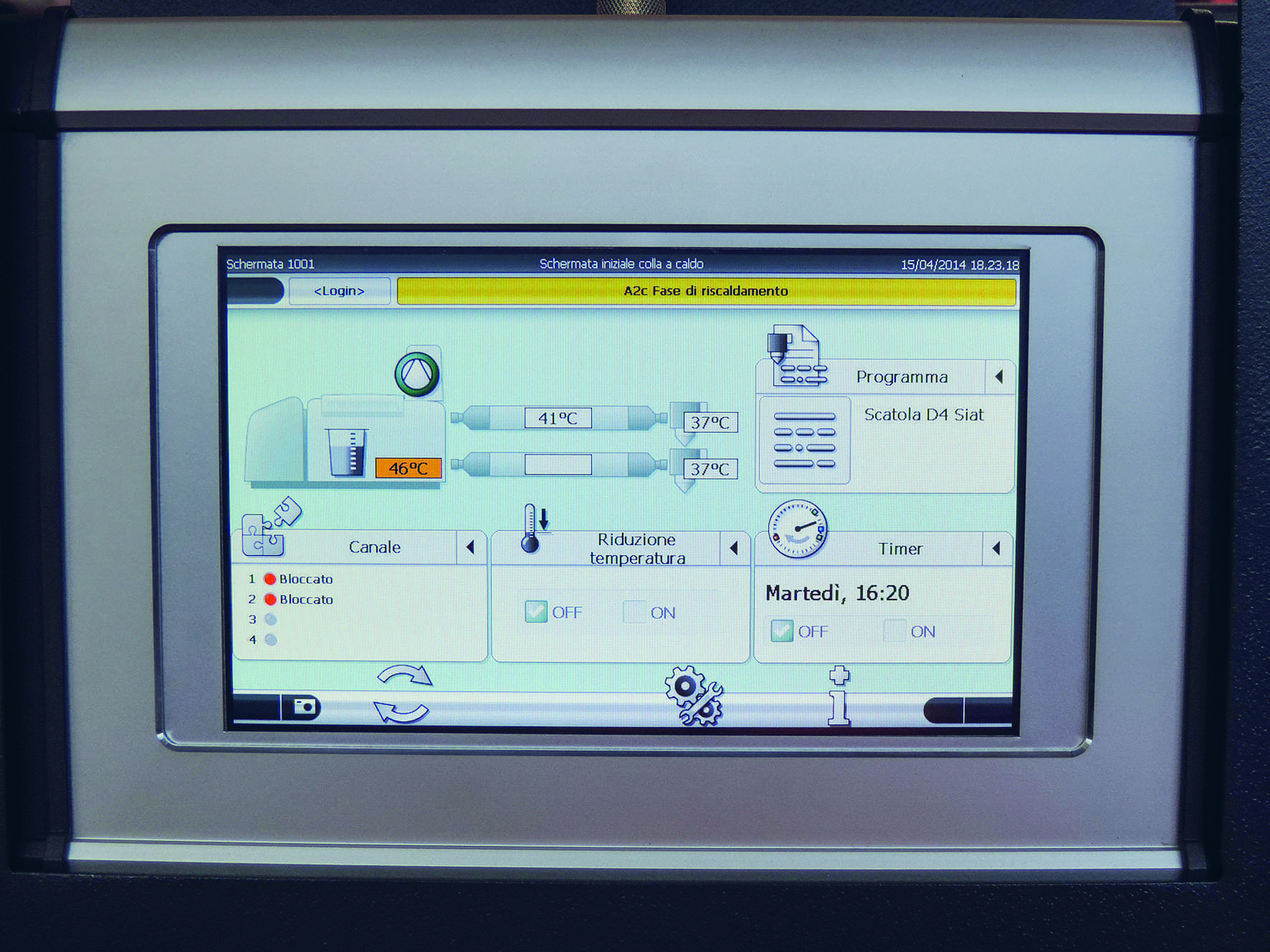 - Ο διανομέας κόλλας ρυθμίζει τη θερμοκρασία και τον όγκο της κόλλας.